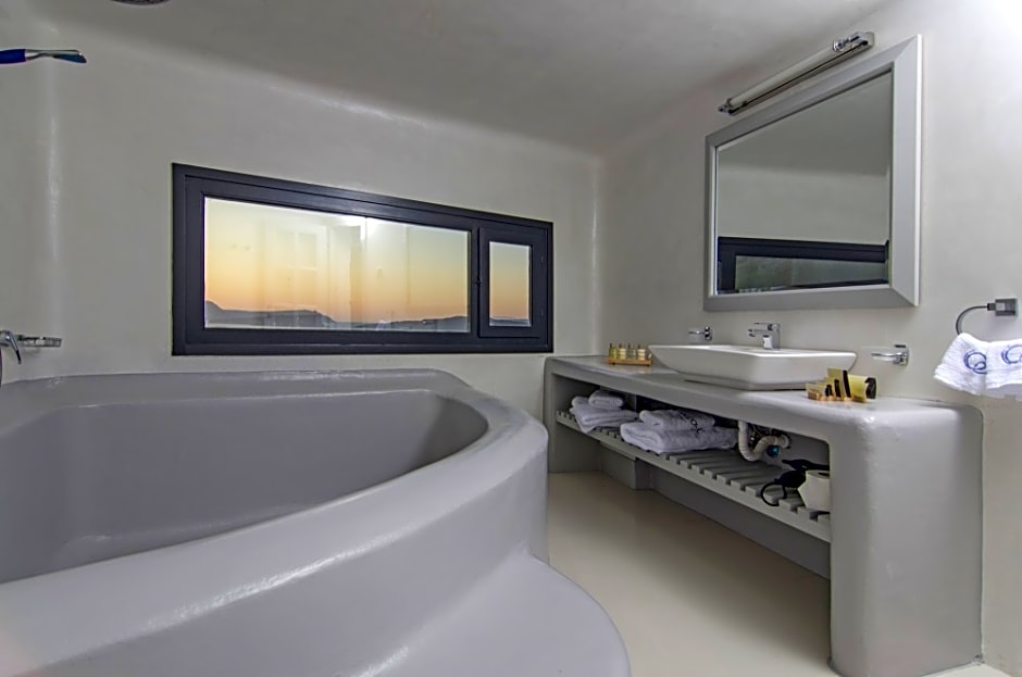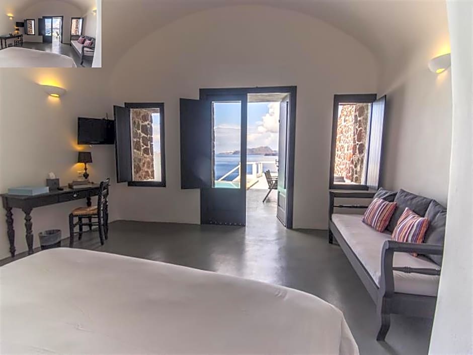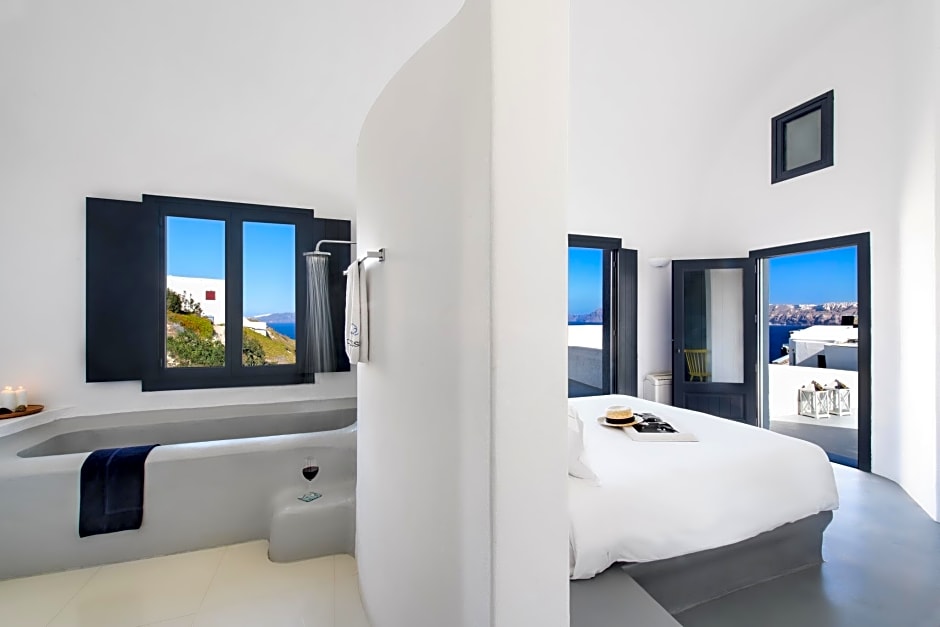 On-site dining comes with a view at Dione, a modern Greek restaurant that sets the mood for relaxed island evenings. A bar completes the scene for sunset sips after a day of island exploration. Accommodations offer options with sea, Caldera, or landmark views, plus private terraces, balconies, private entrances, and gardens that invite guests to linger and soak in the Aegean ambiance.